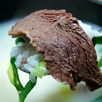 곰취초밥 안에는 고추냉이가 생으로 들어있다. 갈아서 회나 찍어먹던 것을 이렇게 마늘처럼 먹으니 독특했다.
